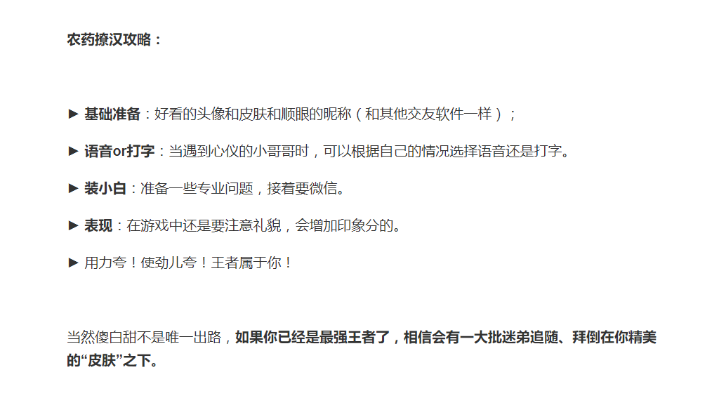多一点夸奖,多一点宠爱。游戏社交做得再好,不如两个人爱情稳固重要。当然还有最后一句话需要牢记:电子竞技没有爱情。