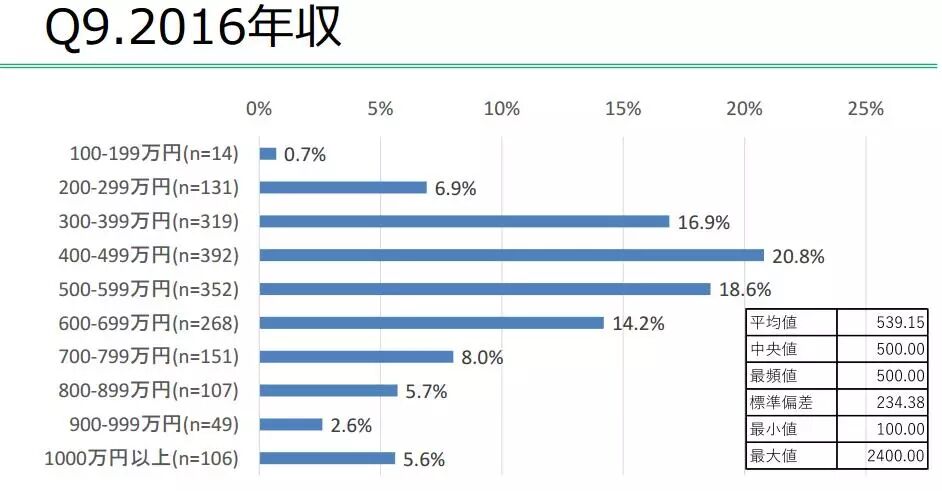 2016平均年收入为539万日元(约合人民币32万),北海道、近畿的开发者年收入超平均水平