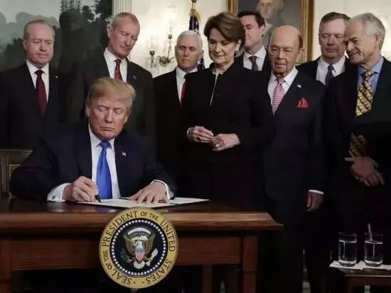3月22日,在美国华盛顿白宫,美国总统特朗普(前)签署总统备忘录。(新华社/图)