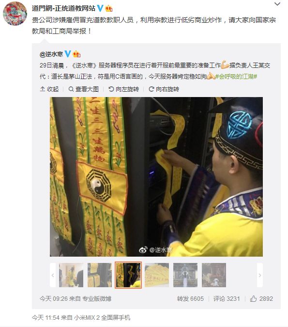官方显然早就意识到了这点,并且做了一些准备,比如给服务器贴符咒。(虽然遭到了道教组织的批评 )