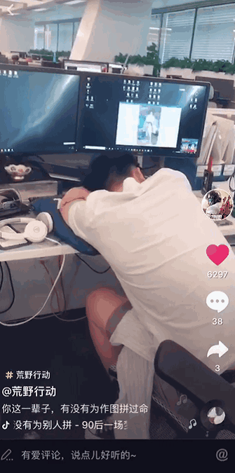 《荒野行动》发布的这支短视频,记录了苦逼的设计小哥,累得趴在桌子上睡着了。