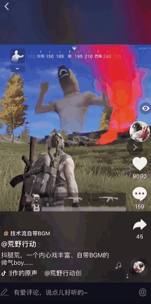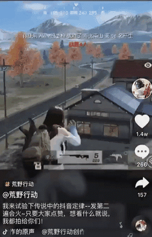 例如,《荒野行动》会将游戏实况操作与背景音乐完美结合,堪称踩点狂魔。这样的视频不仅可以完美适合抖音社区的调性,更能增强短视频的节奏感。
