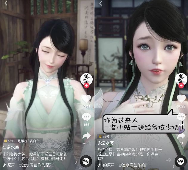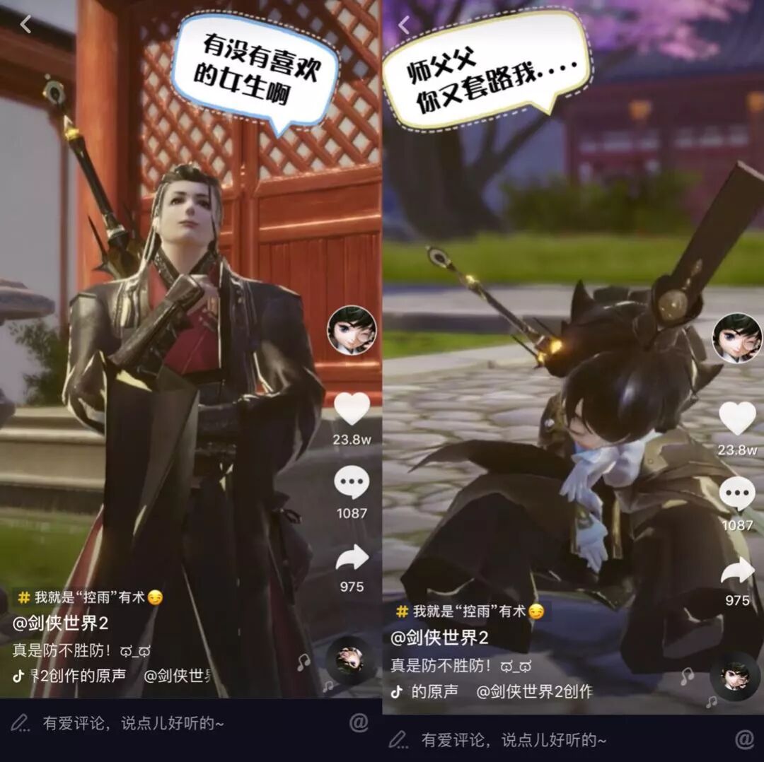对游戏角色进行再创作,是《剑侠世界2》抖音短视频的主要内容形式之一。15秒的短片宛如一集微动画故事,吸引了不少潜在玩家关注。