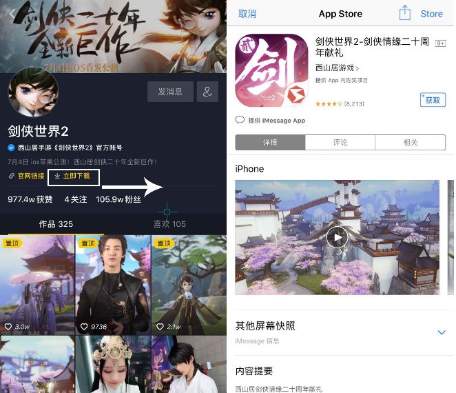 同属武侠类的端游《逆水寒》想通过抖音导流显然不太现实,从移动端跳转至电脑端的路径过长,用户也很难被检测到。