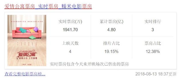 不过《爱情公寓》电影的换皮,并没有影响到它前几日的票房。在电影上映4天,电影累计票房已达4.8亿。