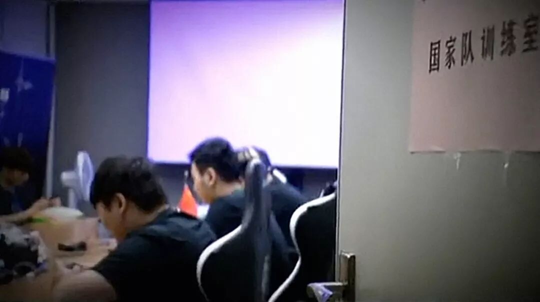 一间宽敞的会议室,门上贴着印有“国家队训练室”的普通A4纸。几个平均年龄仅20岁出头的年轻人围成一圈,聚精会神地盯着手机屏幕,时不时相互交流着训练中的各项信息和战术,他们正进行紧张的训练。