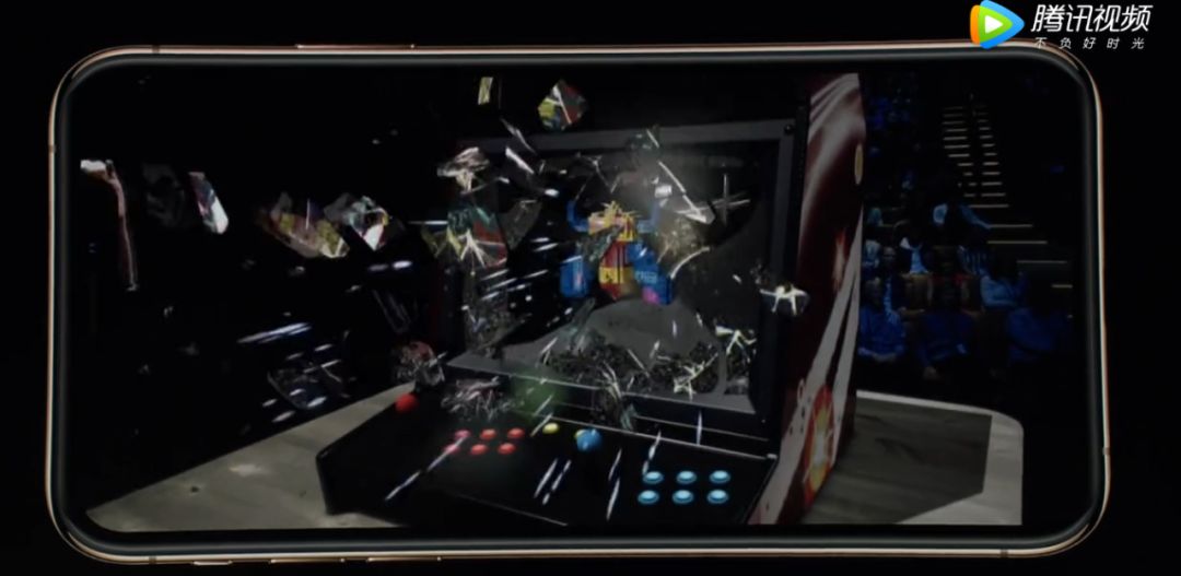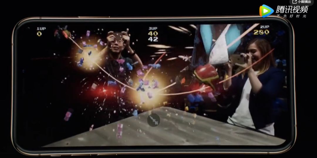 另一款游戏则是一款突出苹果ARKit建设成果的AR游戏《Galaga AR》。在现场的演示视频中,几名使用手机对着一个平面进行扫描,随后桌面上出现了一台游戏机,在游戏开始后游戏机破裂,并从中涌出大量怪物。
