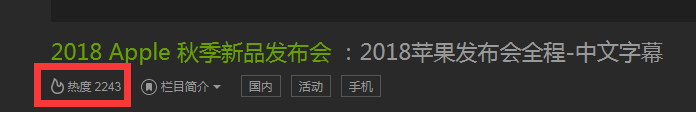 在爱奇艺平台,苹果发布会的回放视频热度达到了2243。而最近现象级的《延禧攻略》大结局热度为9000左右。