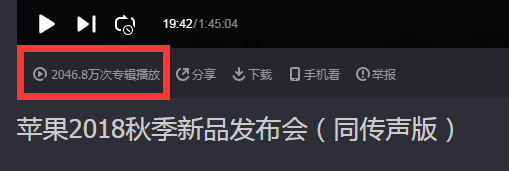在腾讯视频平台,苹果2018秋季新品发布会的专辑播放次数达达到了2046万。