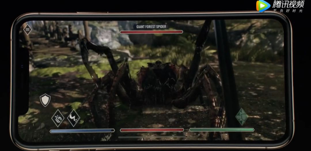 随后,苹果为观众演示了《上古卷轴:刀锋战士》中的战斗,可以看到战斗系统和《上古卷轴5:天际》几无二致,只是操作方式转换为了触屏。而苹果公司在随后补充,在新一代iPhone的支持下,无论是出击还是格挡,触屏操作的反应是实时的。在手机端中以第一人称视角玩一款RPG游戏游戏,操作的实时性非常重要,实现实时操作意味着触屏操控体验将会大大提升。