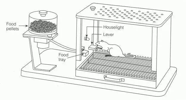著名的斯纳金箱实验模拟了为什么“赌博”——如简单的老虎机,或者更复杂的赌博——会给予人类以依赖感和成瘾性。将一只很饿的小白鼠放入斯金纳箱中,多次按下按钮,概率掉落食物。结果小白鼠学会了不停按钮。当不再掉落食物时,小白鼠的学习行为消失速度非常慢。随着概率越来越低,小白鼠按按钮的学习行为没有变化,直至40-60次按按钮掉落一个食物,小白鼠仍然会不停按按钮,持续很久一段时间。由于概率性给予结果,行为者很难直观地判断机制是否失效,所以单次的失败不会给予明显的“惩罚”效果,终止行为者的习惯,从而行为者的学习行为会一直持续下去。
