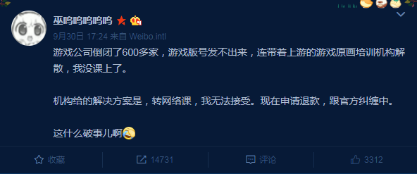 从3月份开始停止审批的版号已经成为了游戏行业必谈的话题,随着时间的后移,暂停审批给游戏产业带来的影响也更加明显。9月底,有画师在微博上哭诉,受游版号影响,游戏公司倒闭了600多家,产业链上游的游戏原画培训机构也受牵连解散,导致她的绘画课程出现了一些问题。