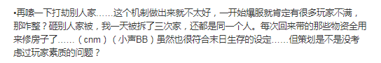 就比如玩家PVP玩法中的“拆家”模式,有玩家认为该模式十分降低游戏体验,并有“逼氪”嫌疑,微氪玩家挫败感极强。