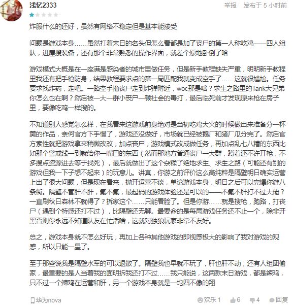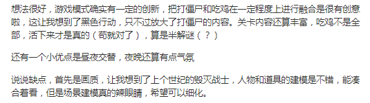 而大量的一星评价则更集中于游戏本身与“吃鸡”的差异化不够充足,没有给玩家更奇特的体验。
