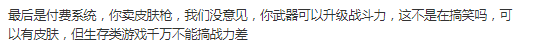 其次则是氪金系统的问题,和《绝地求生》之类的“吃鸡”游戏不同,《代号Z》售卖的“皮肤枪”是附带属性增强的,并且可以增强角色的战斗力。