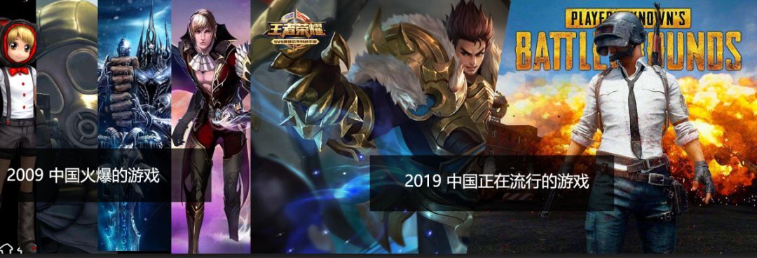 而2019年,中国游戏的游戏玩家被几款游戏所分割,端游最热门的游戏必数《绝地求生》,手游届的一哥依然是《王者荣耀》,即使还有《阴阳师》、《FGO》、《梦幻西游》、《QQ飞车》等细分领域的王者, 但总体来看,相比起2009年多元,2019年大部分中国玩家不是在“吃鸡” 就是在“农药”。