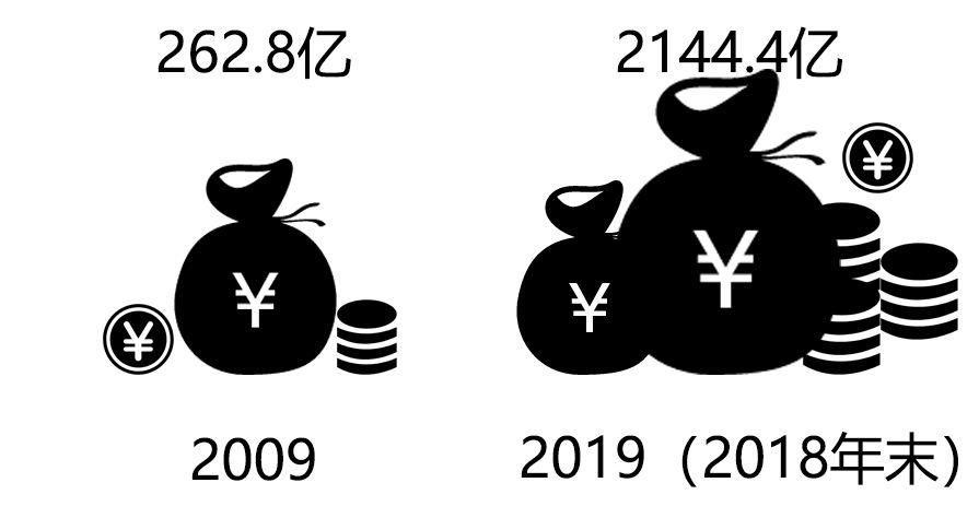 2019年(2018年末),中国自研网络游戏对外出口额为95.9亿人民币,相对于2009年的1.1亿元人民币增长了8618%,增长速度大幅领先游戏行业内的各项数据。