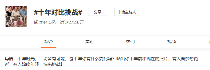 2019年年初,社交媒体中除了杂七杂八的八卦之外,最火的就是“十年对比挑战”了。这个由人民日报主持的微博话题,推出之后便获得了广大人民群众的踊跃参与,总阅读量已经超过44亿。
