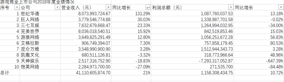 10家游戏公司的合计营业收入达到了411亿元,同比增长达到了21% | 游戏干线