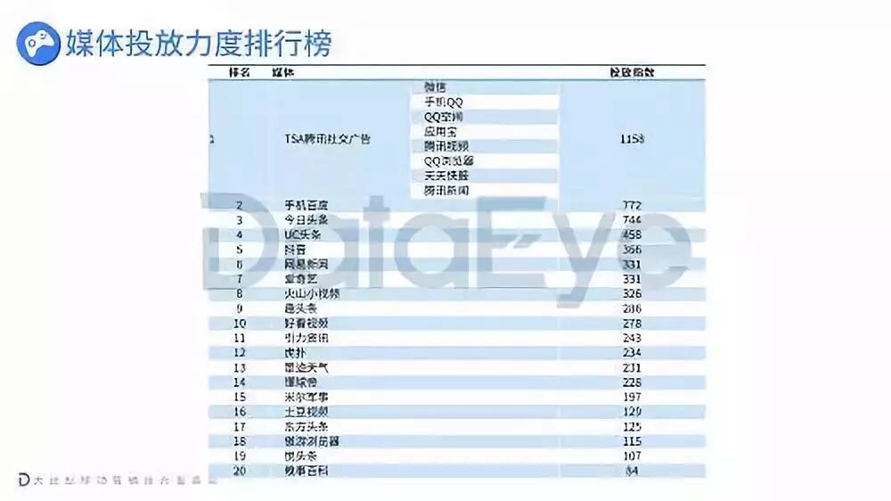 而根据DataEye发布的《2018移动游戏全年买量白皮书》显示,今日头条和抖音两款产品贡献给移动游戏的买量总量与“TSA腾讯社交广告”的买量总量不相上下。