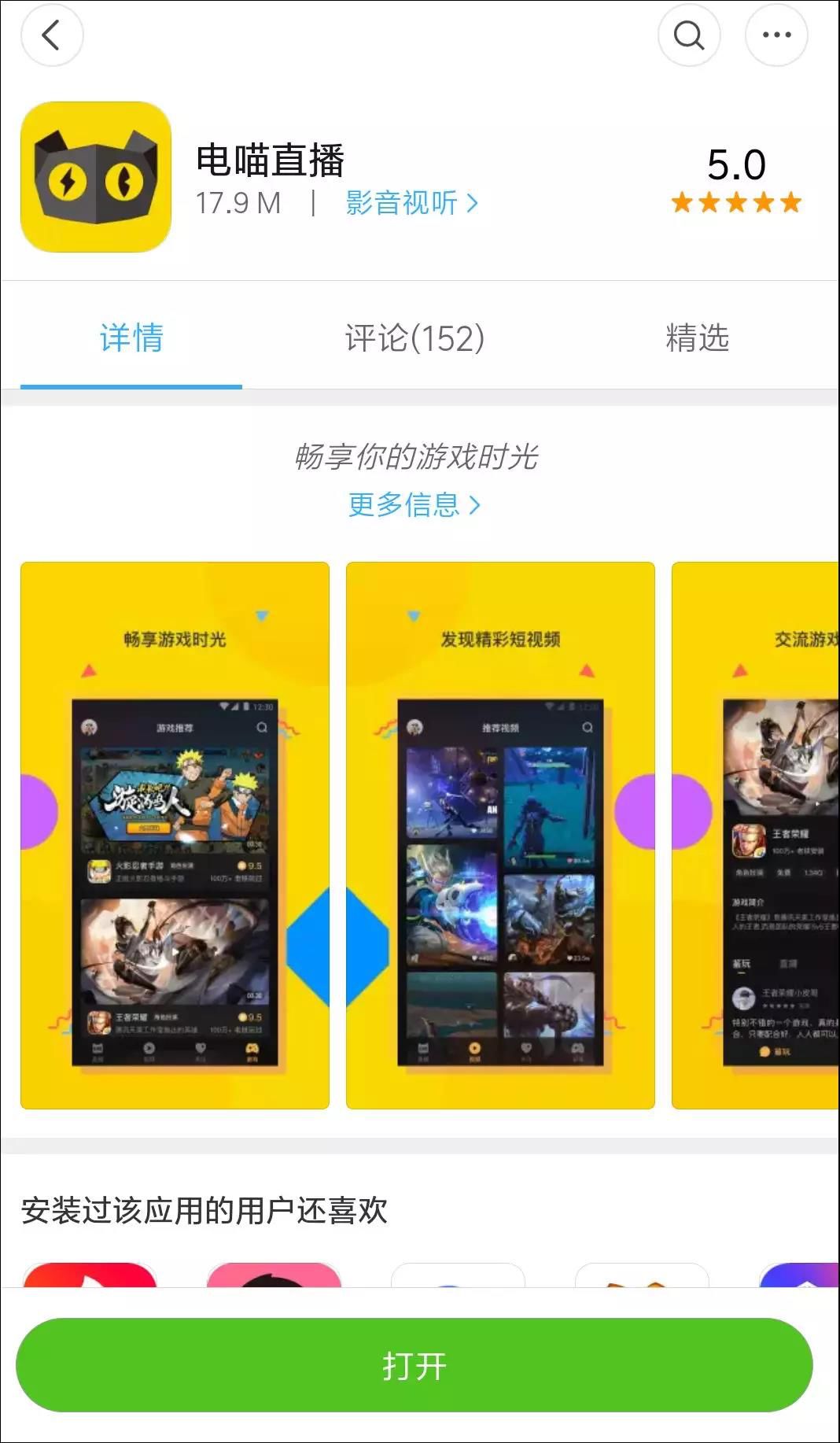 随后,快手推出的“电喵直播”APP悄然在各大安卓应用商店上线,内容涉及游戏直播、游戏论坛等。