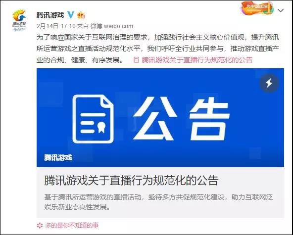 同时,腾讯游戏还于2月14日发布了12条游戏直播规范,更进一步规范游戏直播,也在一定程度上剑指头条。
