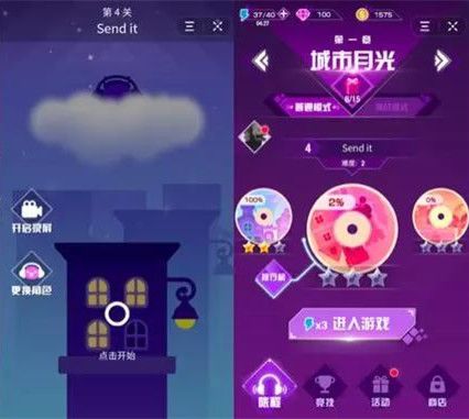 打开音跃球球,背景音乐都是大火的抖音神曲,用户需要根据音乐节奏不断点击屏幕,以防止小球坠落,直至曲终过关。这款小游戏类似微信的“跳一跳”,属于音乐类跑酷休闲小游戏。