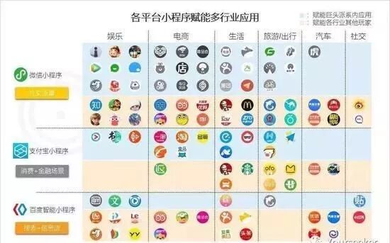 谈及小程序,几乎不可能绕开的一个词是赋能,下图是QM报告中关于各巨头小程序在诸多行业的影响力布局: