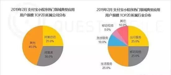 以微信和支付宝为例,二者是关于娱乐休闲和生活服务的对决。有社交打底,微信生态内脱颖而出的小程序多以游戏、娱乐等行业为主;而主打金融支付功能的支付宝,其小程序则更多涉及电商、出行、生活服务等领域。