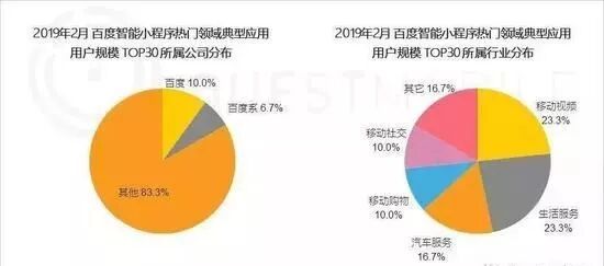 从支付宝小程序和百度小程序的用户规模Top30所属公司类别来看,阿里赋能自家业务(含投资控股)的倾向更为明显,而百度赋能外部公司的比例是最高的。小程序流量的倾斜方式,在一定程度上显示出百度的开放战略。