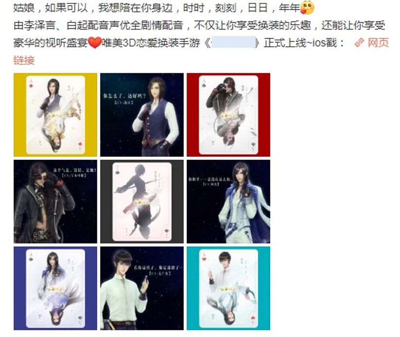 ③ 着重体现和男主之间的互动展示,截取相关的比较吸引用户的男主形象的吸睛部分做成素材,如下: