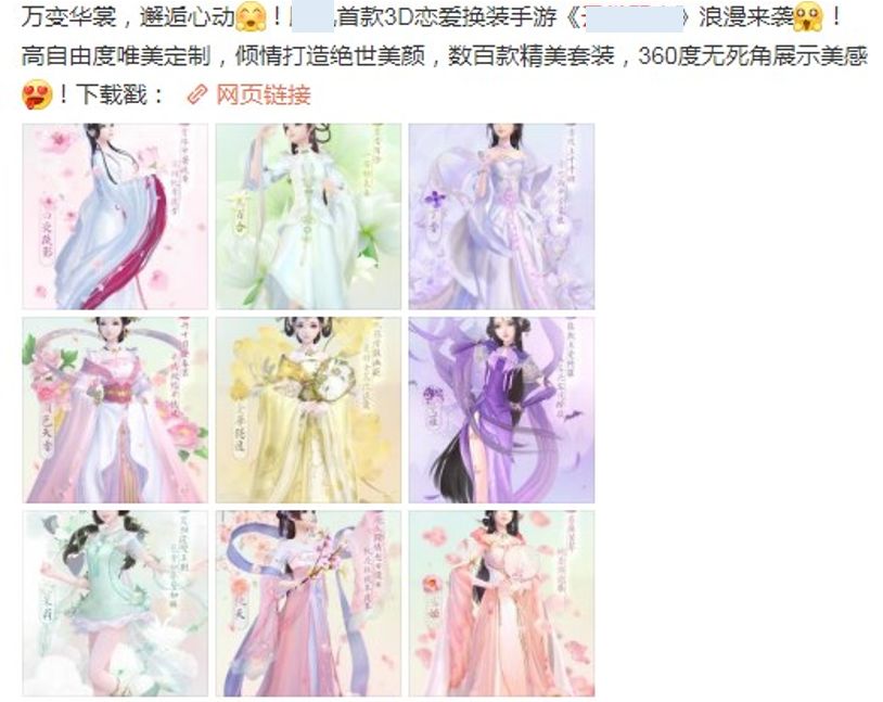 游戏前期设置为古代的剧情及相关的服饰,后期加入了现代剧情以及服装搭配,剧情从古至今,通过如穿越等满足用户心理的剧情设置,满足用户遐想,又带有现实元素,源于现实又高于现实。