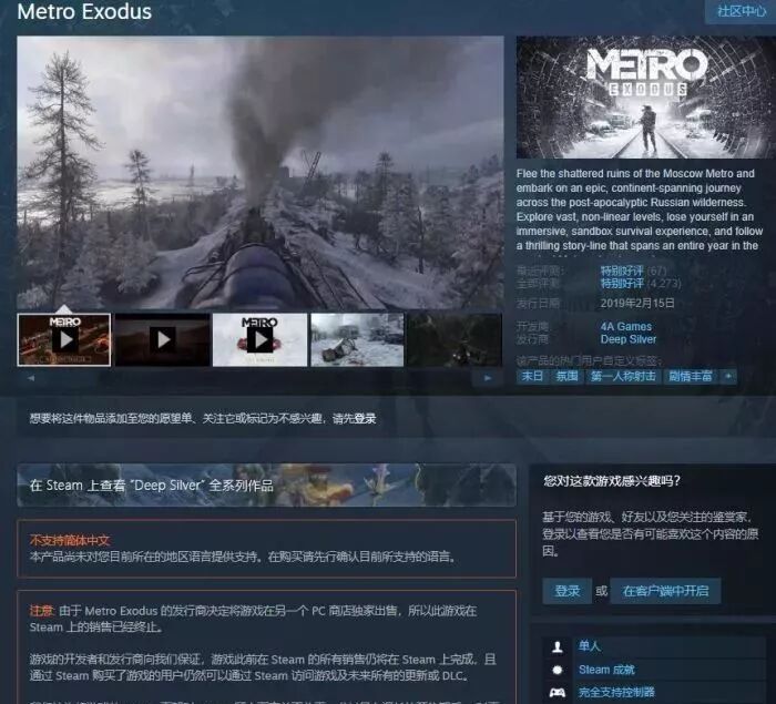 2018年12月6日Epic商城正式上线,不到一个月,育碧宣布他们的《全境封锁2》将选择Epic商城作为Uplay以外的PC版启动入口。在那时候,玩家们的情绪还没有被点燃,只是在质疑《全境封锁2》的做法,真正让玩家不满意的是EPIC硬生生抢走了早已经登录了steam的《地铁:离去》。但《地铁:离去》仅仅是个开端,EPIC通过各种方式独占了一系列备受期待的游戏,比如《无主之地3》,《沉没之城》,《外部世界》……而在前些日子,EPIC更是宣布将在E3 2019 PC游戏秀活动上公布更多即将入驻Epic游戏商城的开发商,其中会有多少独占游戏,仍然是个未知数。