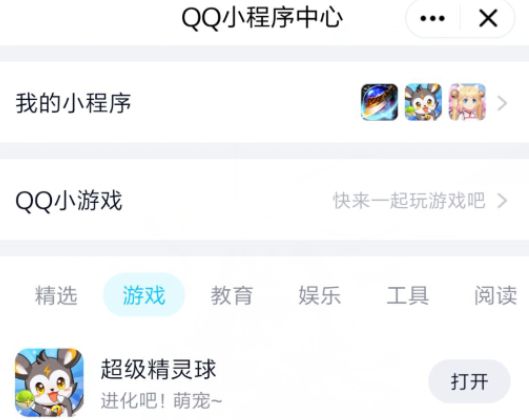 在QQ空间小游戏中心试玩的《超级精灵球》没有出现在厘米秀小游戏中心上,这款游戏虽然在QQ小程序中心的最近在玩列表中存活,但封面被替换了。