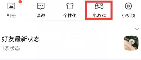 在QQ用户最喜欢的空间动态按钮下,空间功能栏尾部出现了小游戏入口。在这个入口下,用户将进入QQ空间小游戏中心。