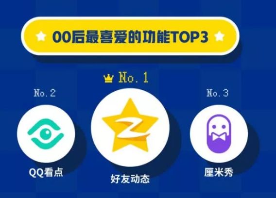“年轻化”是QQ平台的特征,也是其在小游戏领域的核心竞争力之一。腾讯《2019年00后用户社交行为数据报告》显示,00后最喜欢的QQ功能TOP3分别为,QQ空间、厘米秀、QQ看点。