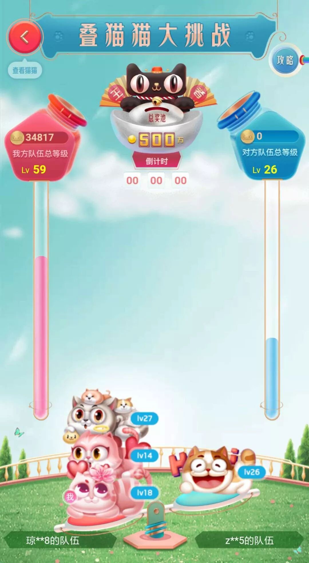 值得一提的是,天猫还引入了叠猫猫大挑战的玩法。在这个玩法下,两组不同的玩家将相互对战,两方会根据队伍里每一个成员的等级得到的总等级进行PK,队伍总等级高的将会源源不断的获得喵币。这样得PK模式一方面会刺激玩家的好胜心理,另一方面也会刺激玩家不断找寻新的朋友加入到对战中来。根据实际测算,玩家的猫猫总等级越高,想要进一步升级就会越难,因此找寻新朋友加入的成本要远小于费心费力提升自身猫猫的等级。