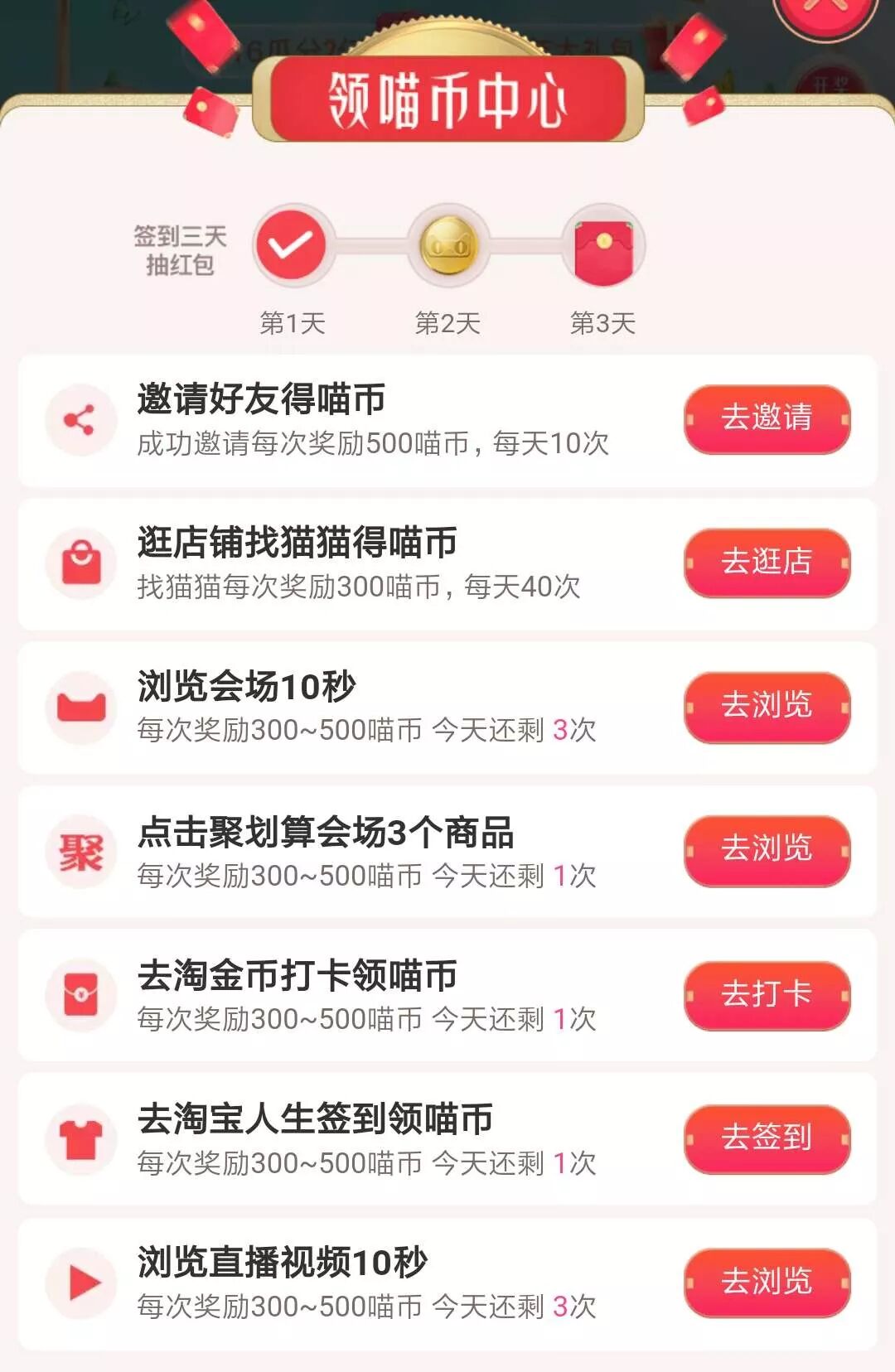 根据类型,可以把赚喵币的方式分为三类:
