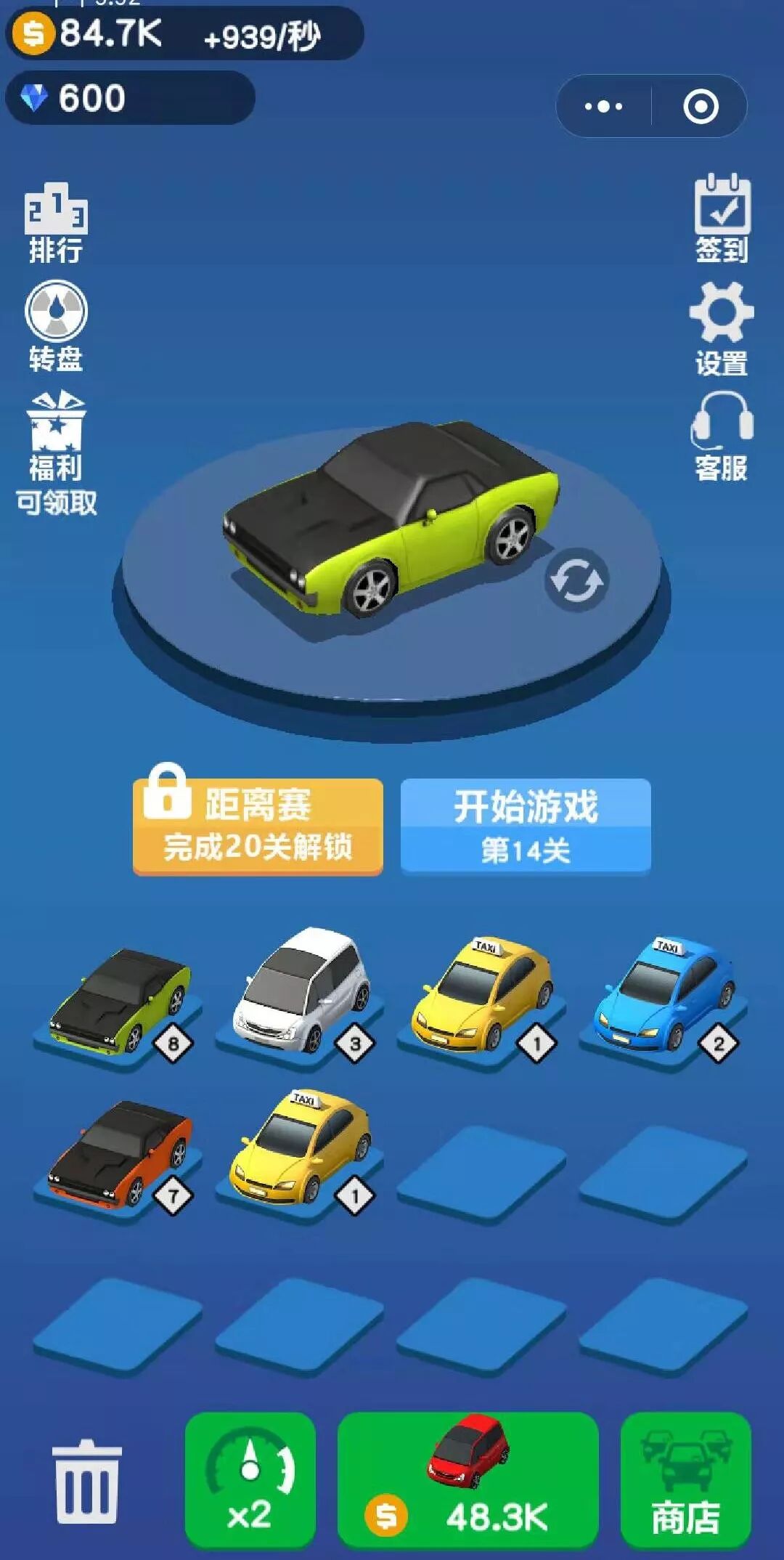 游戏的合成玩法则和大部分游戏的合成玩法相似,由两辆低级车合成一辆高级车,汽车等级越高,花费的资金越贵。目前,在《全民漂移3D》中,最高等级的汽车达到了50级,玩家可收集的汽车不乏悍马,劳斯莱斯等知名汽车。但根据笔者的体验,这些汽车的操作手感区别并不显著,并未感觉到高级车相对于低级车就更加操作精准。因此,这更多的是一个收集系统,用于不断地激励和促进玩家游玩。