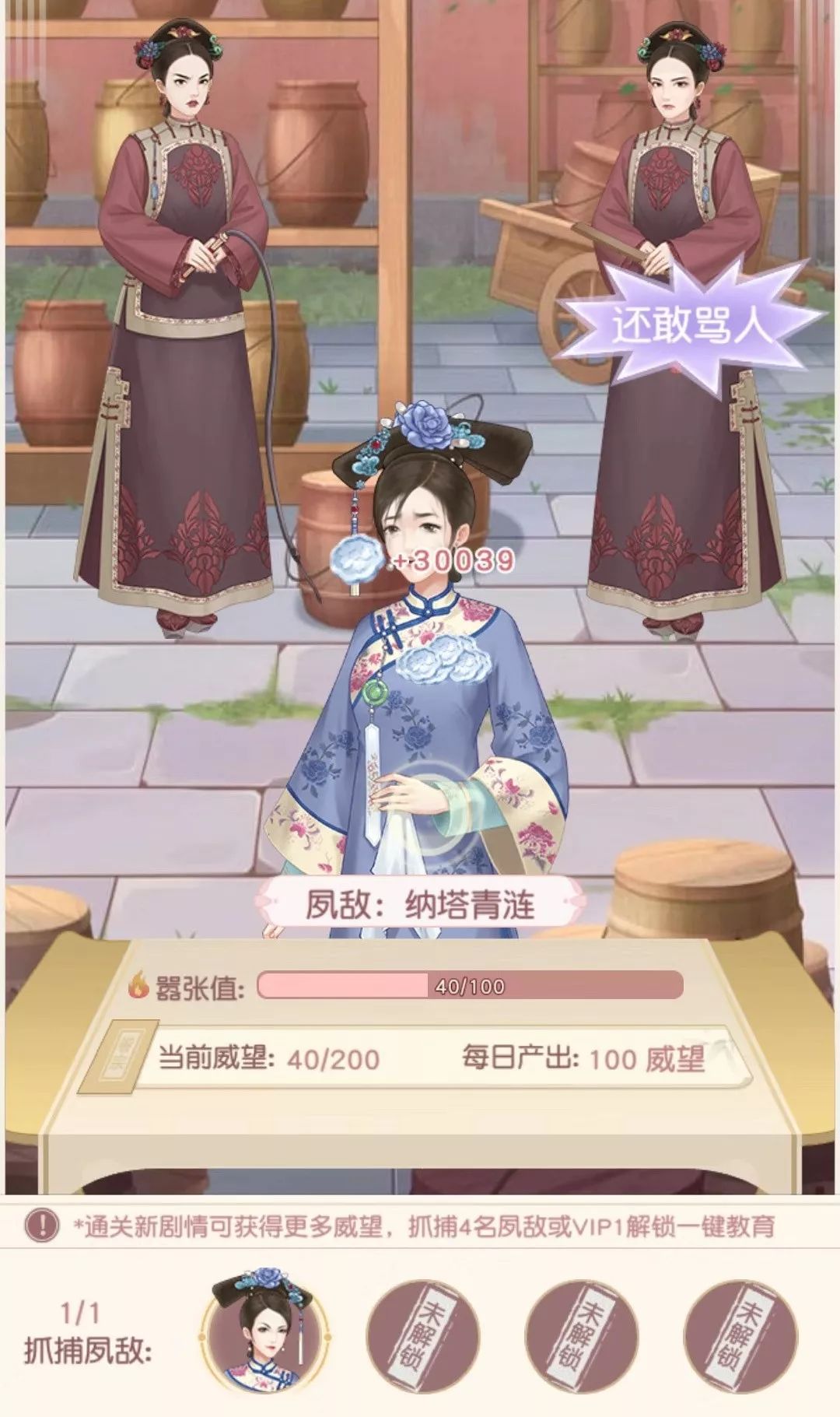 除了在恋爱养成方面下了功夫外,游戏也设计了简单的战斗系统和惩处系统。玩家在通过宫斗打败一个敌人后,敌人会被带到“辛者库”。玩家可以通过花费自身的威望惩处这些敌人,这些敌人在玩家的惩处过程中会产出一些有用的资源,同时立绘也会改变,给玩家以胜利者的快感。