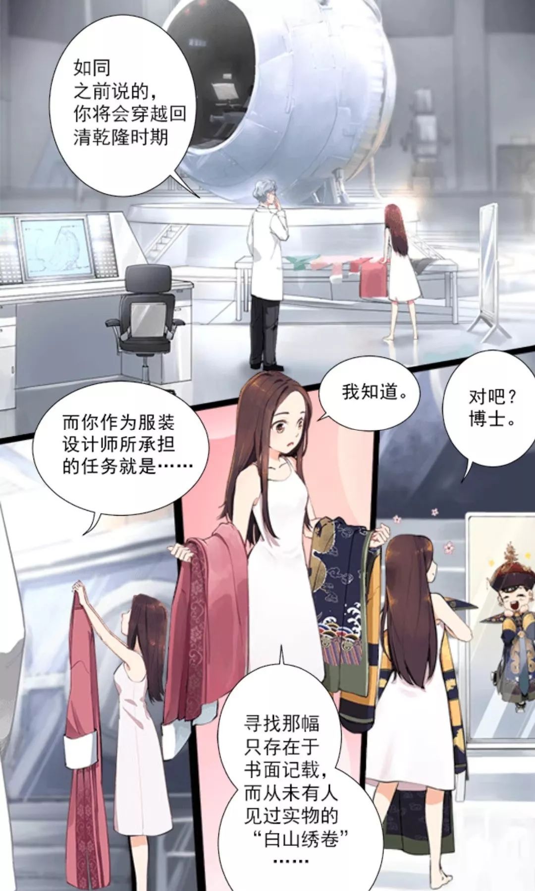 故事讲述了以为现代女性,以寻找“白山绣卷”为目前,穿越到清代乾隆时期,发生的一系列事情。这样的背景虽然有些大众化,但在之女主穿越之后却故事线却愈发扑朔迷离。女主本来以宫女的身份穿越回去,却误打误撞,冒用了一个叫做“陈婉君”的身份,由宫女变为了秀女,被不幸卷入到宫廷斗争当中。