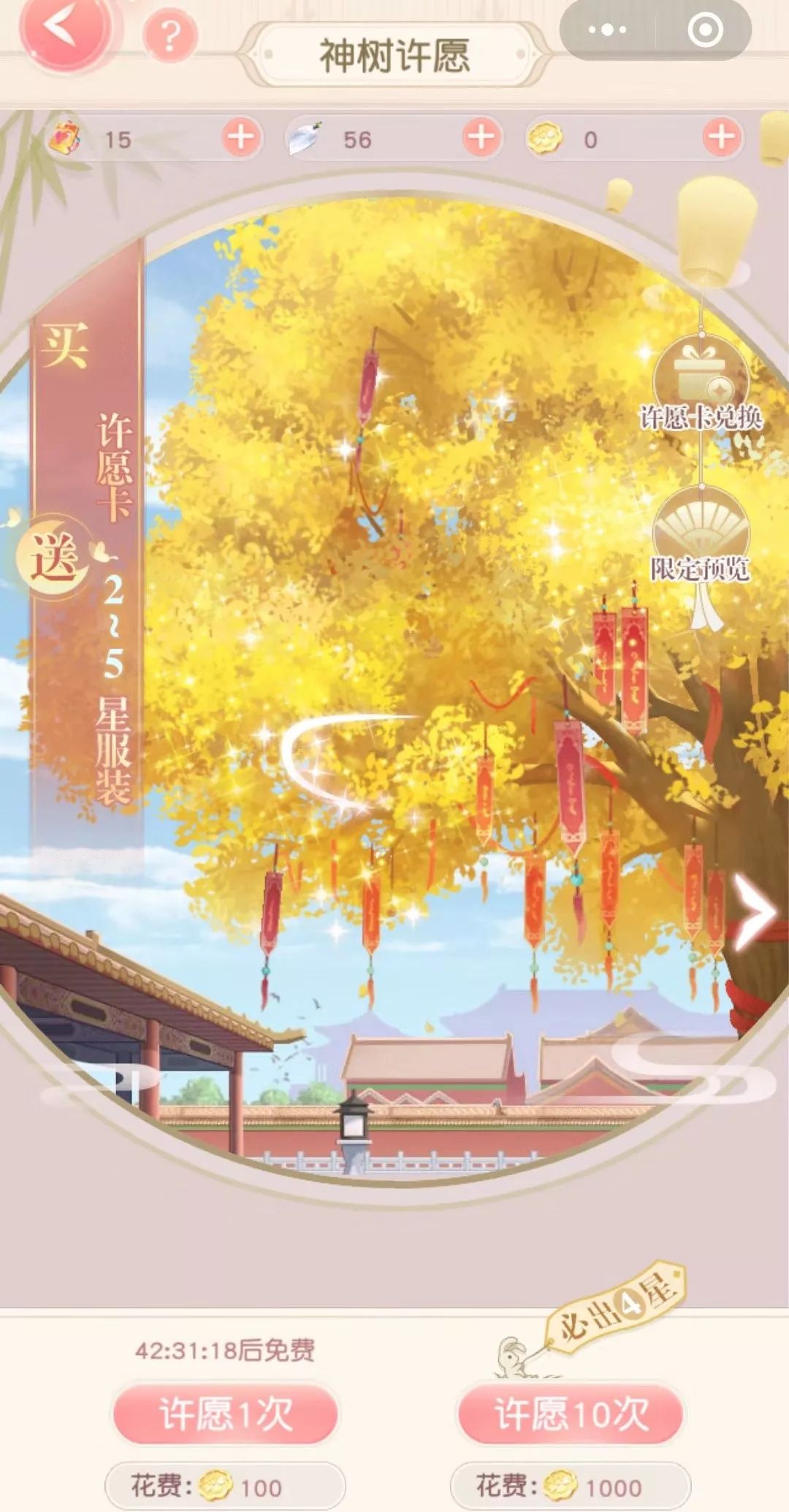 根据笔者观察发现,一个普通的玩家想要登上榜单的靠前位置并不容易。以“服装冲榜”为例子,玩家必须要收藏大量的衣服才能进入榜单。而目前,获得衣物的方式主要来自于商场购买和神树许愿。每次玩家在许愿后会获得一个“许愿卡”和一个随机星级的装饰。当然,这和大多数抽卡游戏一样,十连抽,碎片兑换奖励属于正常性的操作。