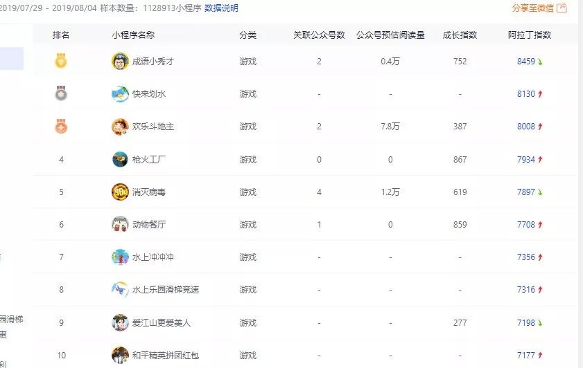 《爱江山更爱美人》作为角色扮演类小游戏的一个突出代表,在阿拉丁数据上表现也非常稳定,根据《2019年微信小程序7月TOP100榜单》显示,《爱江山更爱美人》作为新上榜单的小程序,排名到了40位,而这周也位居小游戏排行榜的第9位,成绩可谓相当不错。