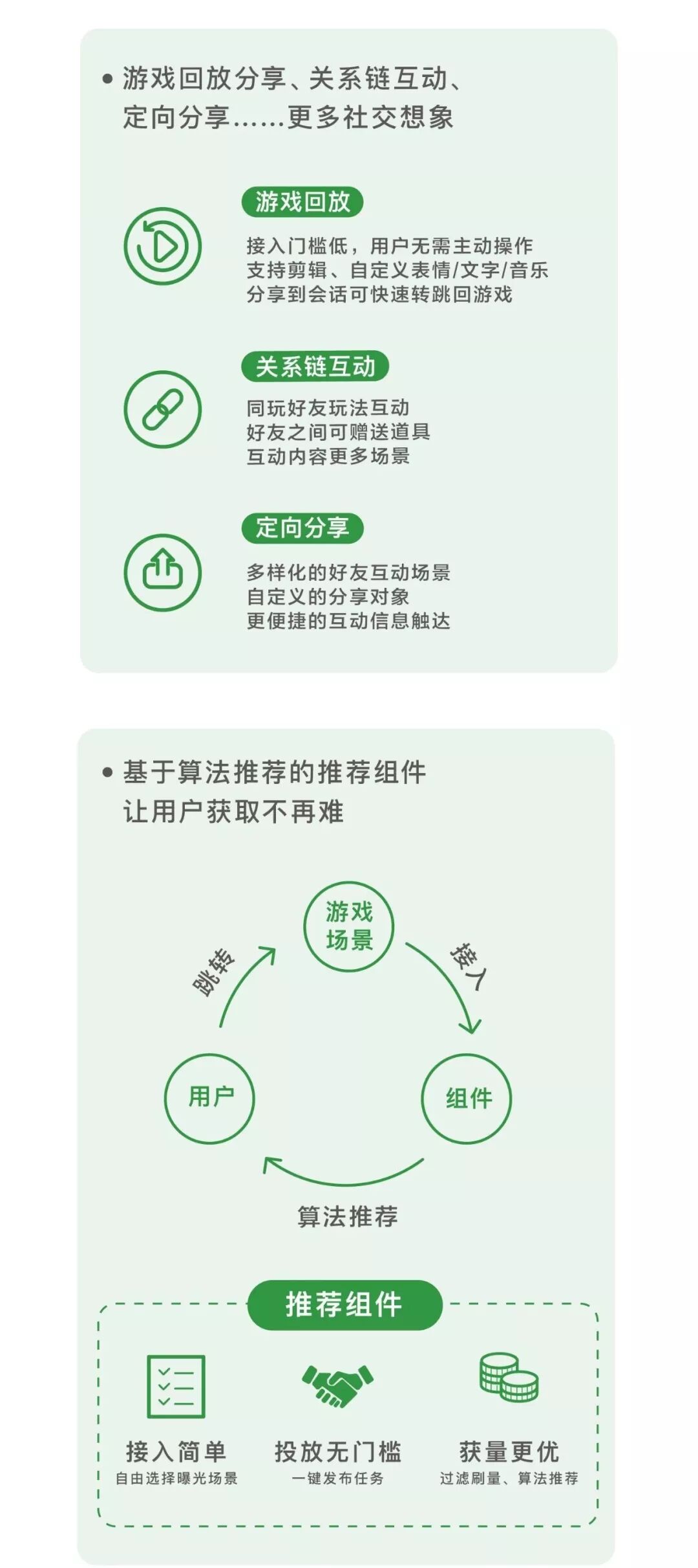 业务营收关系小游戏的生死存亡问题,平台逐步落地多项小游戏变现模式,为开发者提供简便而轻量的接口,提升小游戏变现效能。