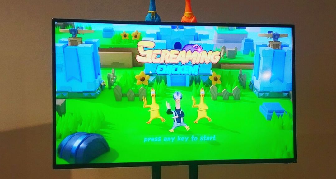在游戏展示区,拥有大型显示屏位置的《Screaming Chicken》非常显眼。许多人在走进展示区望见这款游戏时,都会不由自主的脱口而出“蔡徐X”。