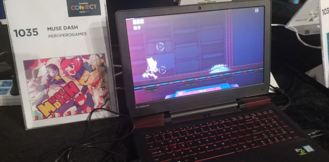 《Muse Dash》的美术风格十分鲜亮,游戏手感优秀,节奏感非常强。在场聚集了非常多的参与者试玩,不过对于不太常玩这类游戏的用户而言,《Muse Dash》还是颇有难度,在场的试玩者们平均坚持不足1分钟便败下阵来。