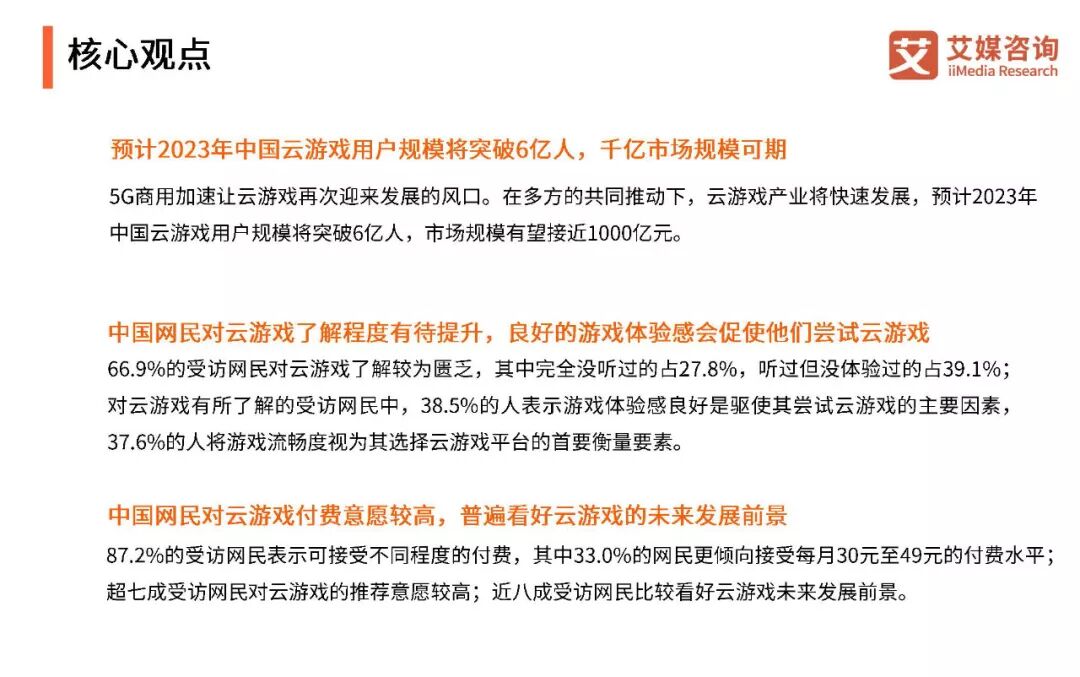 艾媒咨询2019中国云游戏研究报告:未来三年中国云游戏用户规模将达3.73亿