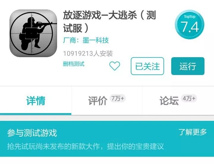 这些挂羊头卖狗肉的作品玩起来到底如何,早已被垃圾手游荼毒多年的移动玩家们基本心中有数,但耐不住想在手机上玩吃鸡的人太多了,在TapTap上《放逐游戏》到目前为止,该游戏在TAPTAP上显示的下载量共有1000万,是社区同类型游戏中下载量最多的产品。值得一提的是,该游戏虽然已经拿到了1000万下载量,但目前仍是处于测试状态,并未正式发布。可想而知这是有多饥渴。