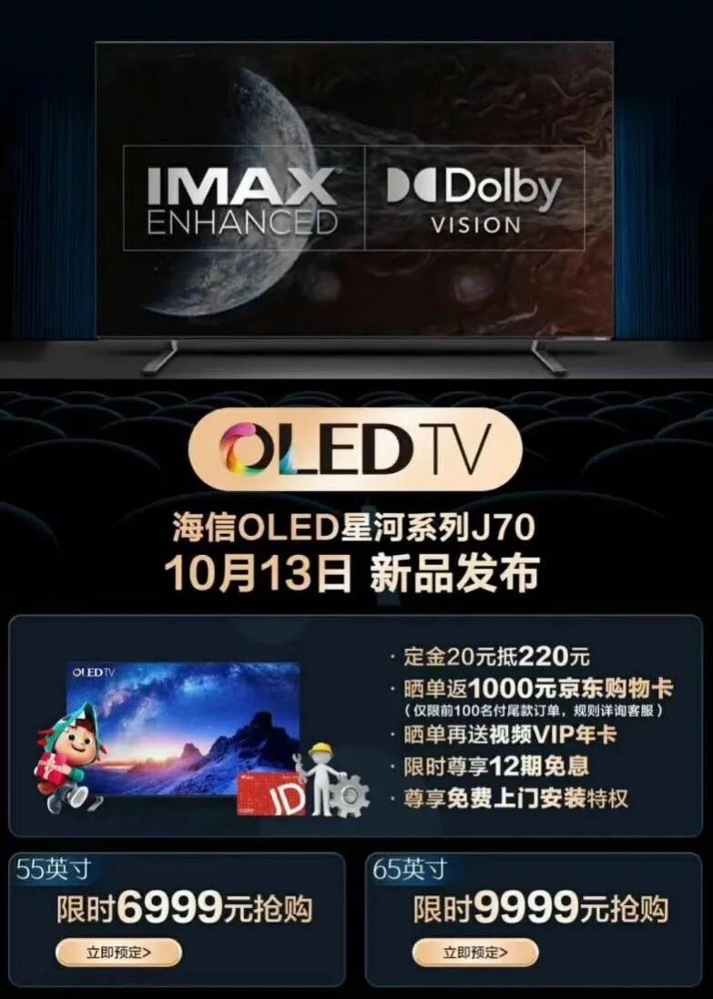 OLED技术的引爆点要来了?海信联合京东发布OLED电视J70强袭双十一?