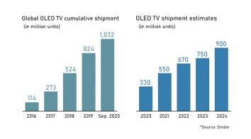 目前OLED行业正在酝酿着一场大的爆发,全球大尺寸OLED面板供应商LG Display在广州投建的OLED8.5代线已实现大规模量产,OLED面板产能不断扩张。根据市场研究公司Omdia报告显示,截至今年9月份,全球OLED电视出货量达到1032万台,实现了里程碑式的突破。这是自LG电子于2013年推出首款OLED电视以来,全球OLED电视出货量首次突破1000万台。